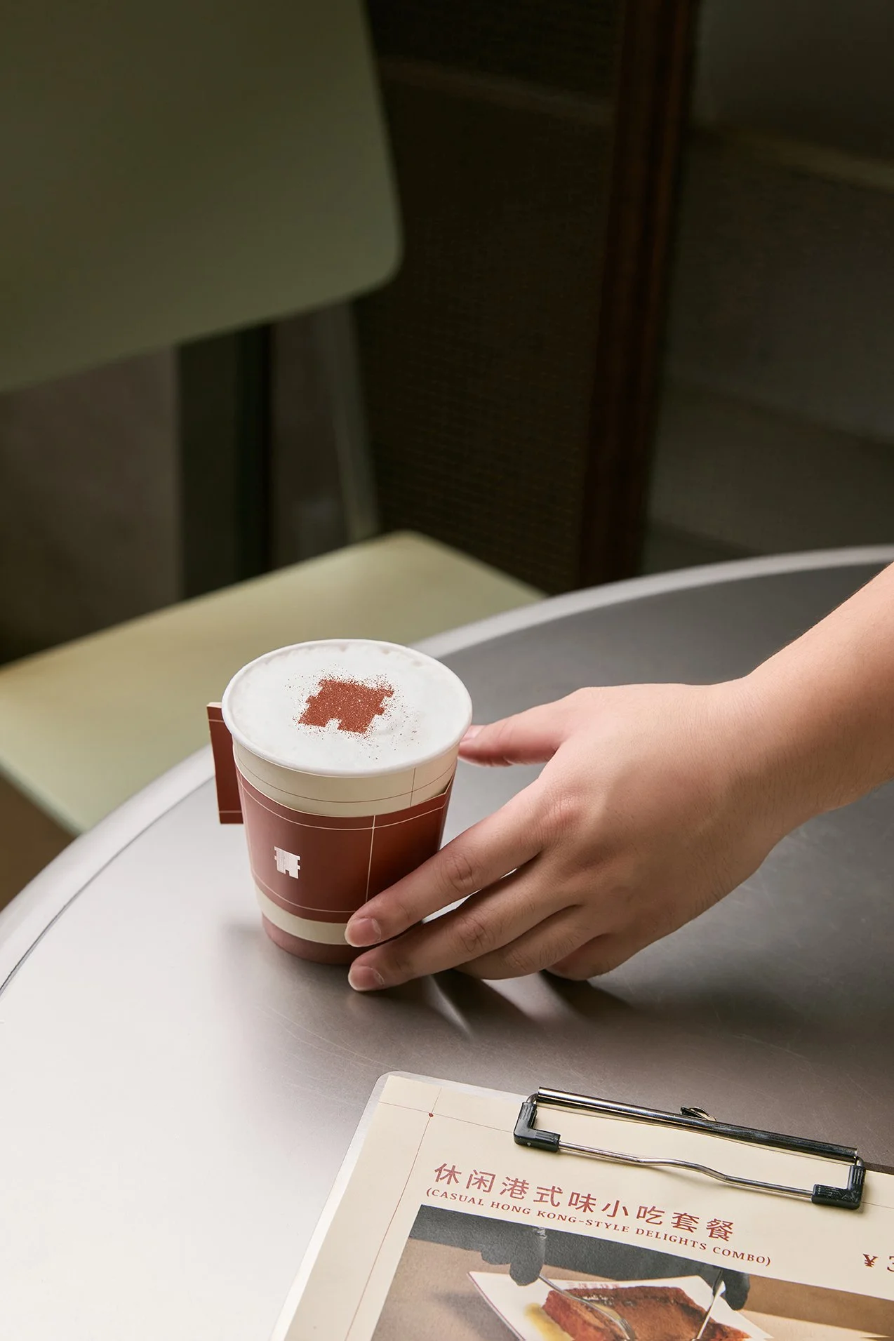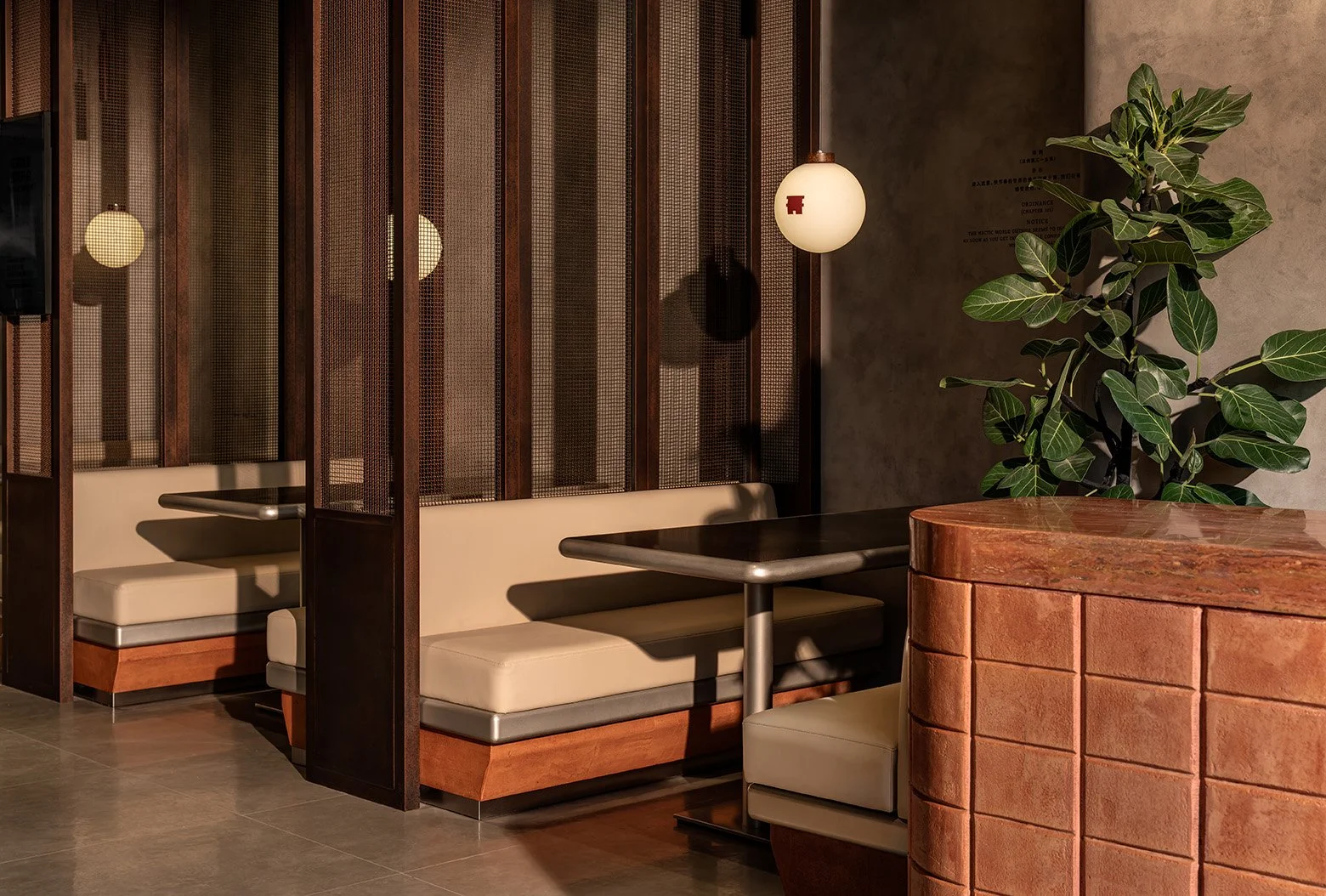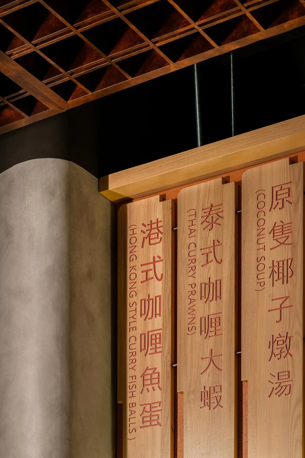 These elements pay tribute to the neighbourhood’s rich industrial history and the brand’s heritage, while also evoking a sense of nostalgia in all customers. The addition of richly textured wood, oxidized steel, and soft fabrics, all carefully selected to align with the brand’s colour palette, creates an unexpected elegance and a unified aesthetic, a harmonious fusion of style and substance that sets it apart from typical cha chaan tengs.